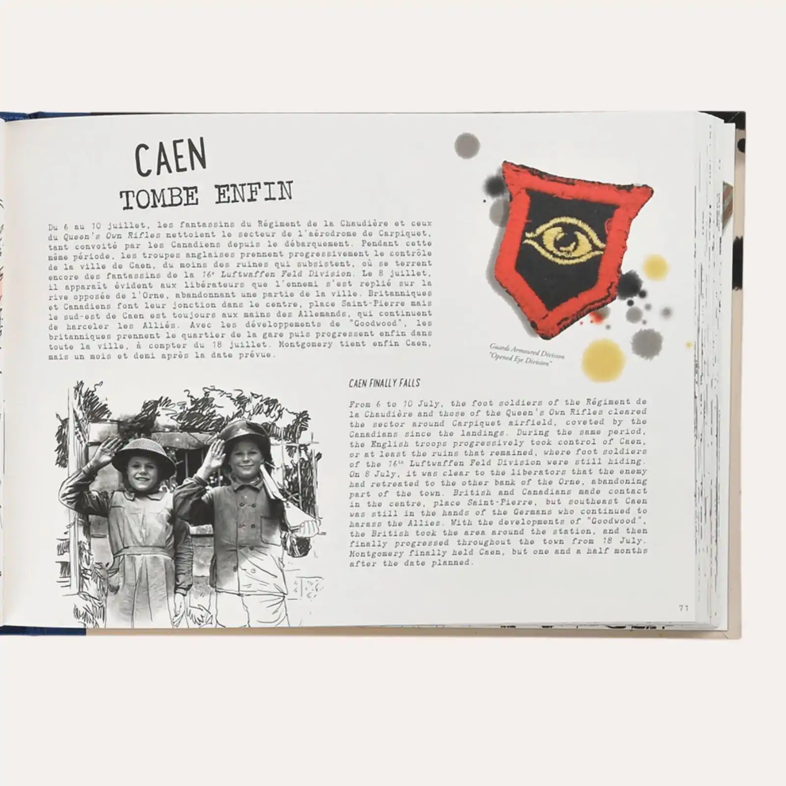 Présenté sous la forme originale d’un carnet de voyage visuel et bilingue (français-anglais), « VICTORY 335 Jours pour libérer l’Europe » retrace de façon vivante et immersive les principales étapes de la campagne alliée qui conduisit à la libération de l’Europe, du débarquement du 6 juin 1944 jusqu’à la capitulation allemande en mai 1945. Patrick Fissot, Arnaud Digard et Marion Caratini guident le lecteur jour après jour à travers les batailles décisives, depuis les plages de Normandie jusqu’à la prise de Berlin, en passant par la libération de Paris, le débarquement en Provence, la bataille des Ardennes ou encore la progression vers l’Allemagne.